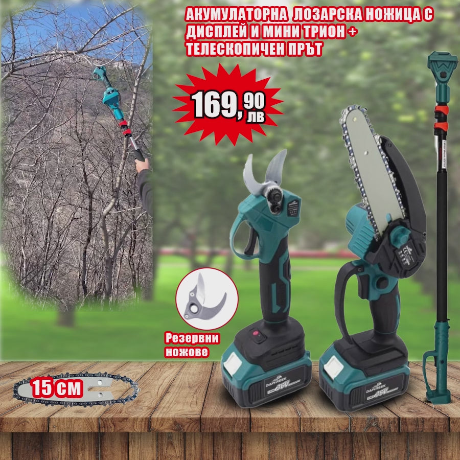- 1бр Акумулаторна Безчеткова Лозарска Ножица